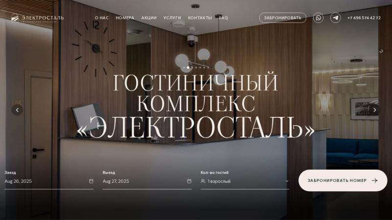 Всего в городе Электросталь найдено сайтов отелей, пансионатов, гостевых домов, баз отдыха: