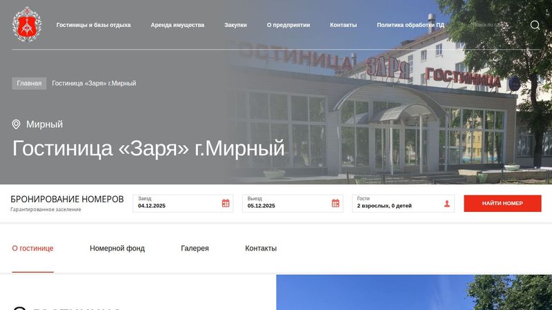 Всего в городе Мирный найдено сайтов отелей, пансионатов, гостевых домов, баз отдыха: