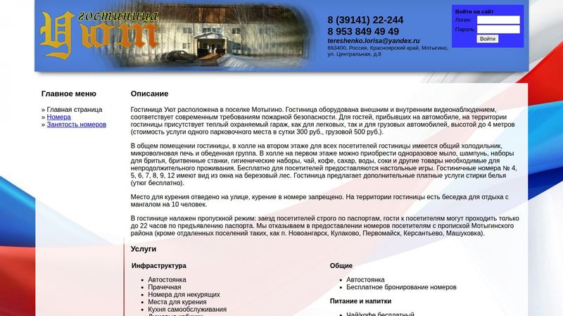 Всего в поселке Мотыгино найдено сайтов отелей, пансионатов, гостевых домов, баз отдыха: