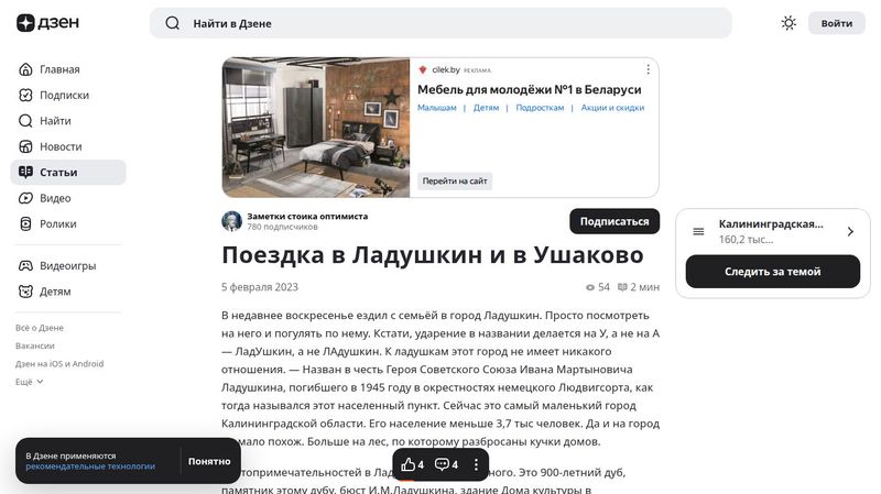 Что о городе Ладушкин знает